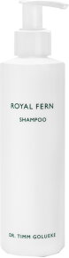 Das Royal Fern Hair Shampoo 200 ml ist ein mineralöl- und parabenfreies Shampoo für jeden Haartyp, welches die natürliche Stärke Ihrer Haare fördert und Ihre Kopfhaut pflegt. Mit dem patentierten Royal Fern Complex schützt das Shampoo wirksam vor Umweltbelastungen. Es ist perfekt als Vorbereitung einer weitergehenden Behandlung von Haarausfall geeignet. Das im Royal Fern Shampoo enthaltene Koffein erreicht in Kurzzeit (120 Sek.) die Haarfollikel und beugt der hormonbedingten Erschöpfung der Haarproduktion vor. Durch den Verzicht auf Weichmacher wie z. B. Silikon und den Zusatz wichtiger Haaraufbau- und Pflegestoffe wie Keratin verbessert sich die Haarstruktur deutlich und geschwächtes Haar erhält seine Stärke zurück. Zusätzlich wird das Haar durch Antioxidantien wie Vitamin C, Vitamin E und den Royal Fern Complex vor Umweltbelastungen geschützt.