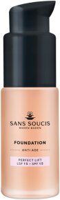 Die Sans Soucis Perfect Lift Foundation 30 ml ist eine Foundation und eine straffende Anti-Aging Grundierung mit einer mittleren Deckkraft, sie ist für alle Hauttypen und auch für die trockene Haut geeignet. Mit Lichtschutzfaktor 10 beugt sie frühzeitiger, lichtbedingter Hautalterung vor. Die geschmeidige Foundation wirkt hautstraffend und mildert mit lichtreflektierenden Pigmenten optisch kleine Linien und Fältchen. Dermaxyl, Weizenprotein, Vitamin E-Acetat, Wiesenschaumkrautöl und Thermalwasser aus Baden-Baden stimulieren die Hauterneuerung, wirken hautstraffend, schützen vor freien Radikalen und verleihen ein seidiges Hautgefühl. Die Perfect Lift Foundation sorgt für ein sanft geglättetes Aussehen und verleiht einen strahlend schönen Teint.
