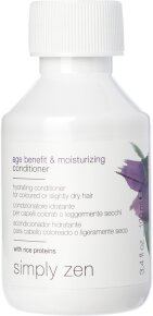 Der Simply Zen Age Benefit & Moisturizing Conditioner ist eine spezielle Pflegeemulsion für den Haarschaft. Ihre Formulierung mit Hyaluronsäure, feuchtigkeitsspendenden Wirkstoffen und Reisproteinen hilft, das Aussehen, die Geschmeidigkeit und die Fülle des Haares zu verbessern. Dank ihrer leichten Textur pflegt sie das Haar, ohne es zu beschweren.