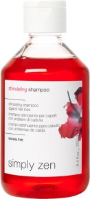 Das Simply Zen Stimulating Shampoo ist mit einer Anti-Haarausfall-Wirkung, das die Mikrozirkulation der Kopfhaut durch die stimulierenden Eigenschaften von Chili und Zimt fördert. Ginko und Heidelbeere schützen die Kapillaren und nähren den Haarfollikel, wodurch die Vitalität des Haares gefördert wird.