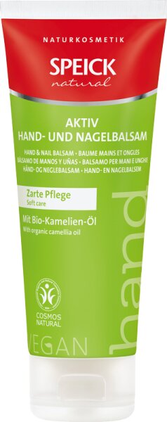Der Speick Naturkosmetik Speick Natural Aktiv Hand- und Nagelbal.75 ml ist eine zarte Pflege, mit Bio-Kamelienöl. Er pflegt und schützt Hände und Nägel lang anhaltend. Außerdem zieht das Produkt schnell ein. Bio-Aloe vera-Gel und natürliches Vitamin F spenden Feuchtigkeit. Fair Trade-Arganöl und Bio-Kamelienöl pflegen Nagelhaut und Nägel.