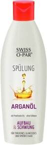 Die Swiss o Par Arganöl Spülung 250 ml ist eine silikonfreie und nicht beschwerende Pflegespülung für trockenes und glanzloses Haar. Angereichert mit wertvollem Arganöl und Provitamin B3 verleiht die Spülung dem Haar lebendige Sprungkraft, spendet Feuchtigkeit und sorgt für glänzendes, gepflegtes Aussehen.