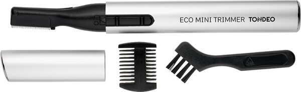 Der TONDEO ECO Mini Trimmer ist ein kleiner und handlicher Haarschneider für die Augenbrauen. Der 34 Gramm leichte Trimmer wird mittels Batterie betrieben und entfernt bequem und effizient unerwünschte Gesichts- und Körperbehaarung und bringt speziell die Augenbrauen sanft in die optimale und gewünschte Form.