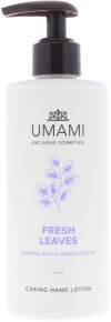 Die Umami Fresh Leaves Hand Lotion 300 ml ist eine einzigartige Handlotion. Ihre Hände verdienen Ihre Aufmerksamkeit. Mit ihr werden Ihre Hände wieder wunderbar weich. Außerdem befeuchten und nähren Sie Ihre Hände und vor allem verleihen Sie Ihren Händen einen frischen, würzigen Duft nach japanischer Minze und Ingwer. Ein wahres Dufterlebnis!