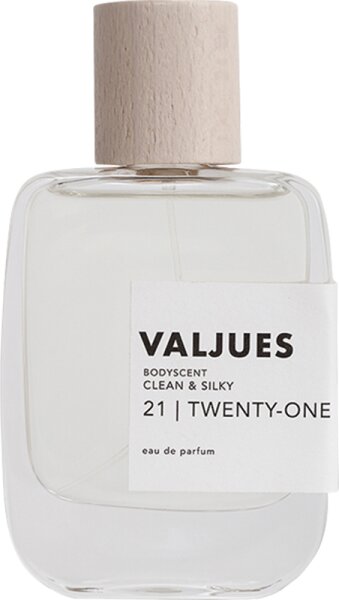 VALJUES - TWENTY-ONE Eau de Parfum überzeugt mit einer einzigartigen Mischung aus warmen, holzigen Noten und balsamischem Amber. Die Kombination aus sauberen Aldehyden und weißen Lilien sorgt für ein Gefühl von Vertrauen. Ein Must-have für alle, die ihren individuellen Stil unterstreichen möchten.