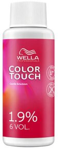 Die Wella Color Touch Emulsion 1,9% ist eine Entwicklerlotion speziell für die Color Touch Glanz-Intensivtönung mit 1,9% Peroxidanteil. Die Emulsion ist auch zur Pastellton-Coloration mit Koleston Perfect verwendbar. Die besonders schonende und sanfte Emulsion belastet die Haarstruktur nicht über Gebühr und sorgt für sichere Ergebnisse.